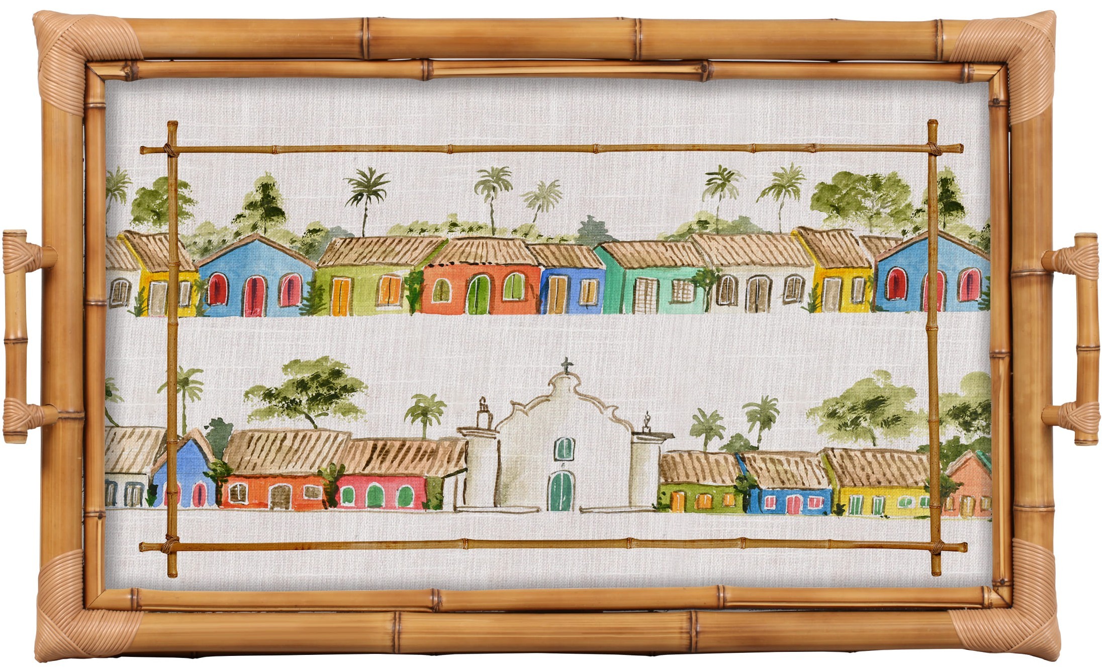 Material: Bambu, tecido com impressão digital e vidro