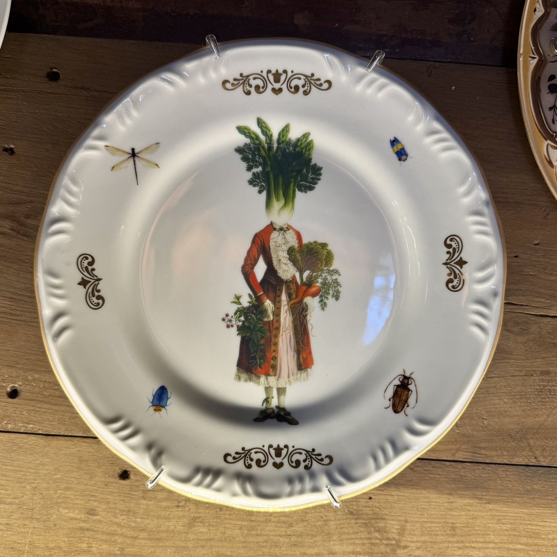 Prato de porcelana com filete em ouro
