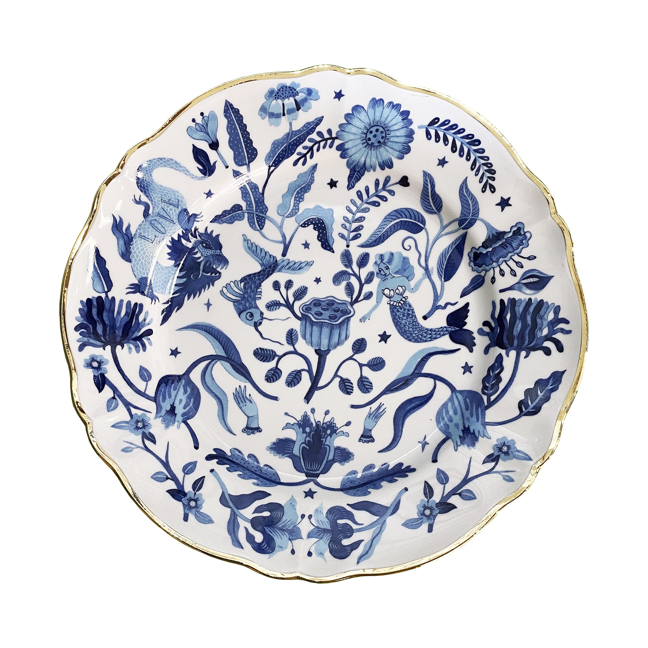 Pratos de porcelana com borda em ouro 22k