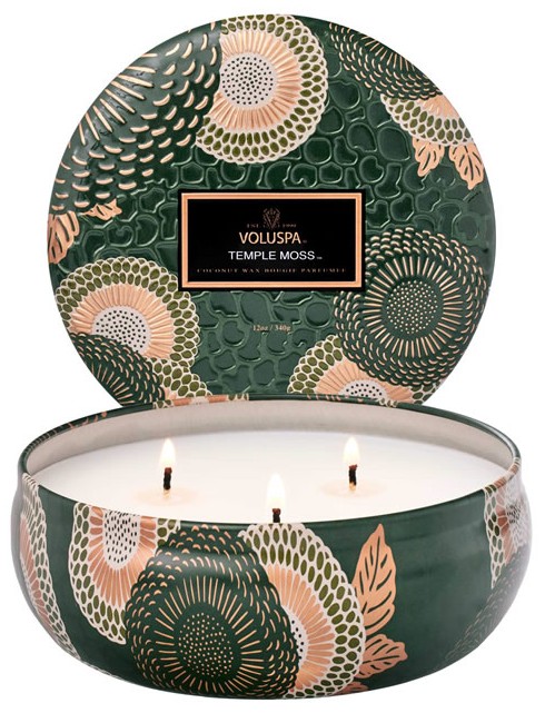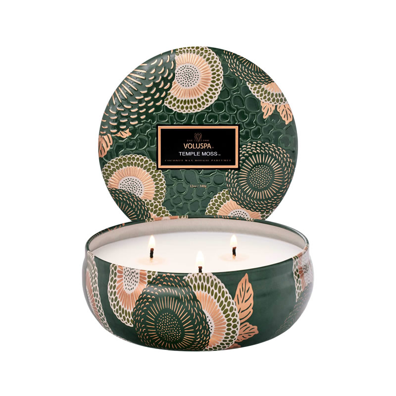 A cor verde profunda do vidro do Temple Moss remete à paleta de musgo e folhas do chão da floresta. A embalagem tem ainda detalhes metálicos de bronze e tons verdes terrosos, inspirando-se no famoso Templo do Musgo em Kyoto.